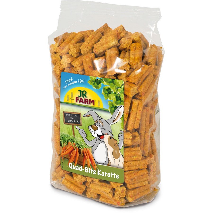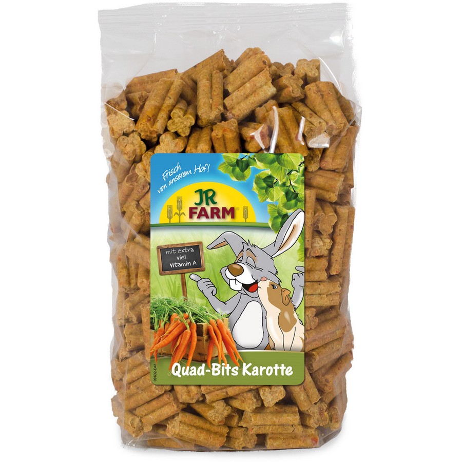 - The unusual form of the pressed Quad- Bits (made of 100% carrots) supports the important abrasion of the teeth. With much natural vitamin A!