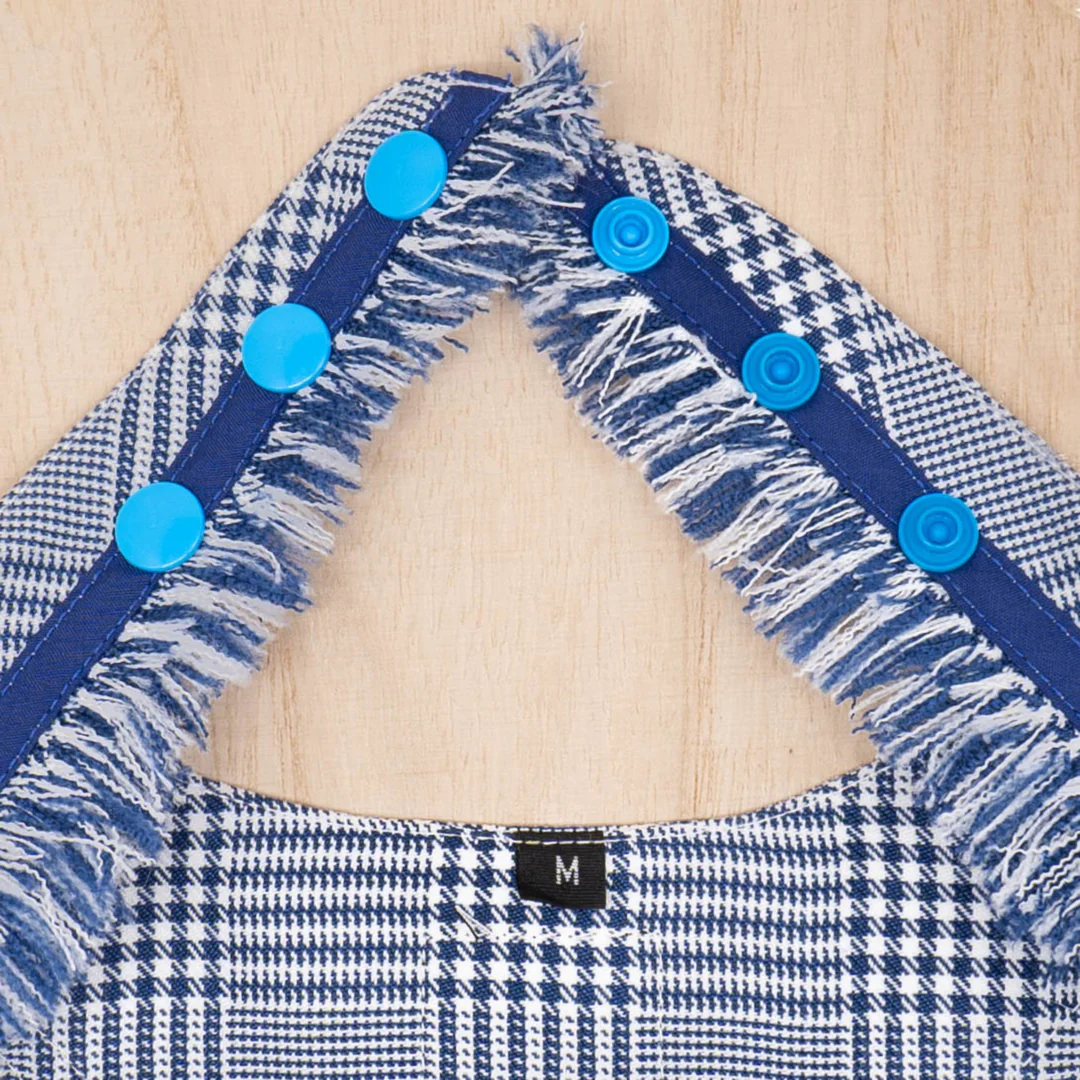 • Adjustable snap buttons at the neck – for a loose or a snug fit.