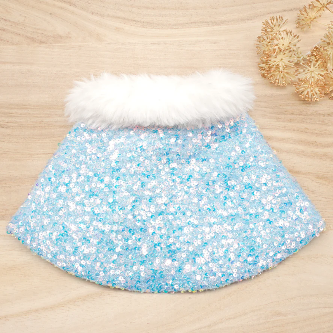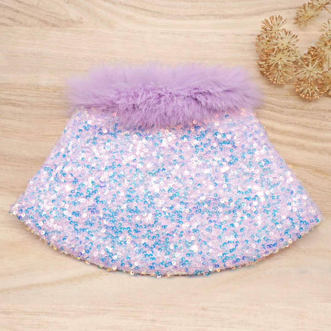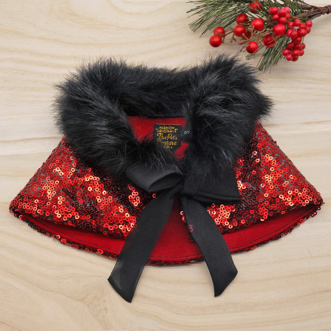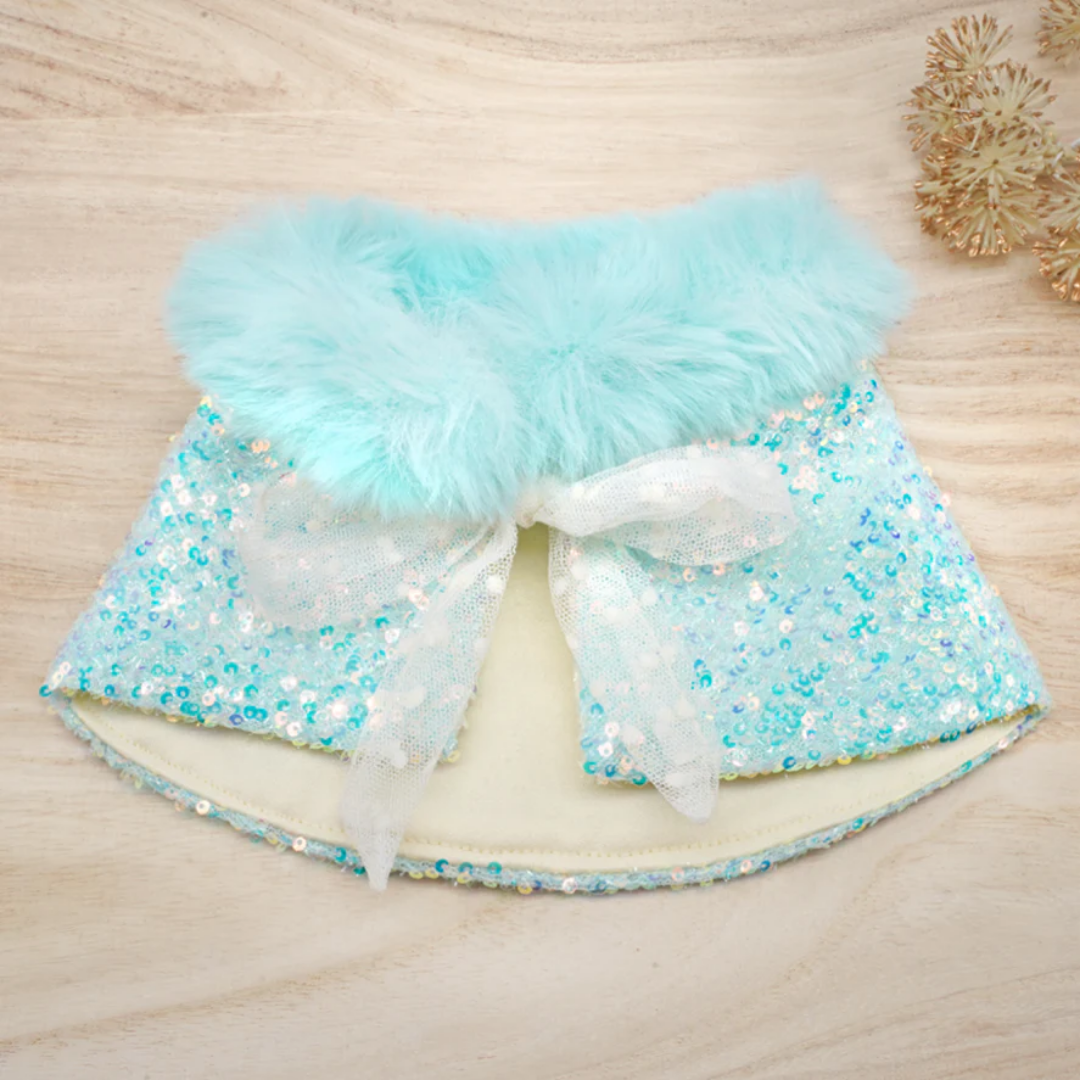 This beautifully sequin-embellished glitter cape is accented with faux fur panels and co-ordinating sequin details. Design and handmade by our dedicated TPC production team of artisans, only quality imported fabrics is screened and selected with our highest standard of workmanship just for you. Style and comfort made in mind for your pet. Perfect for a fashionable night out on the town or it can be worn just about anywhere!