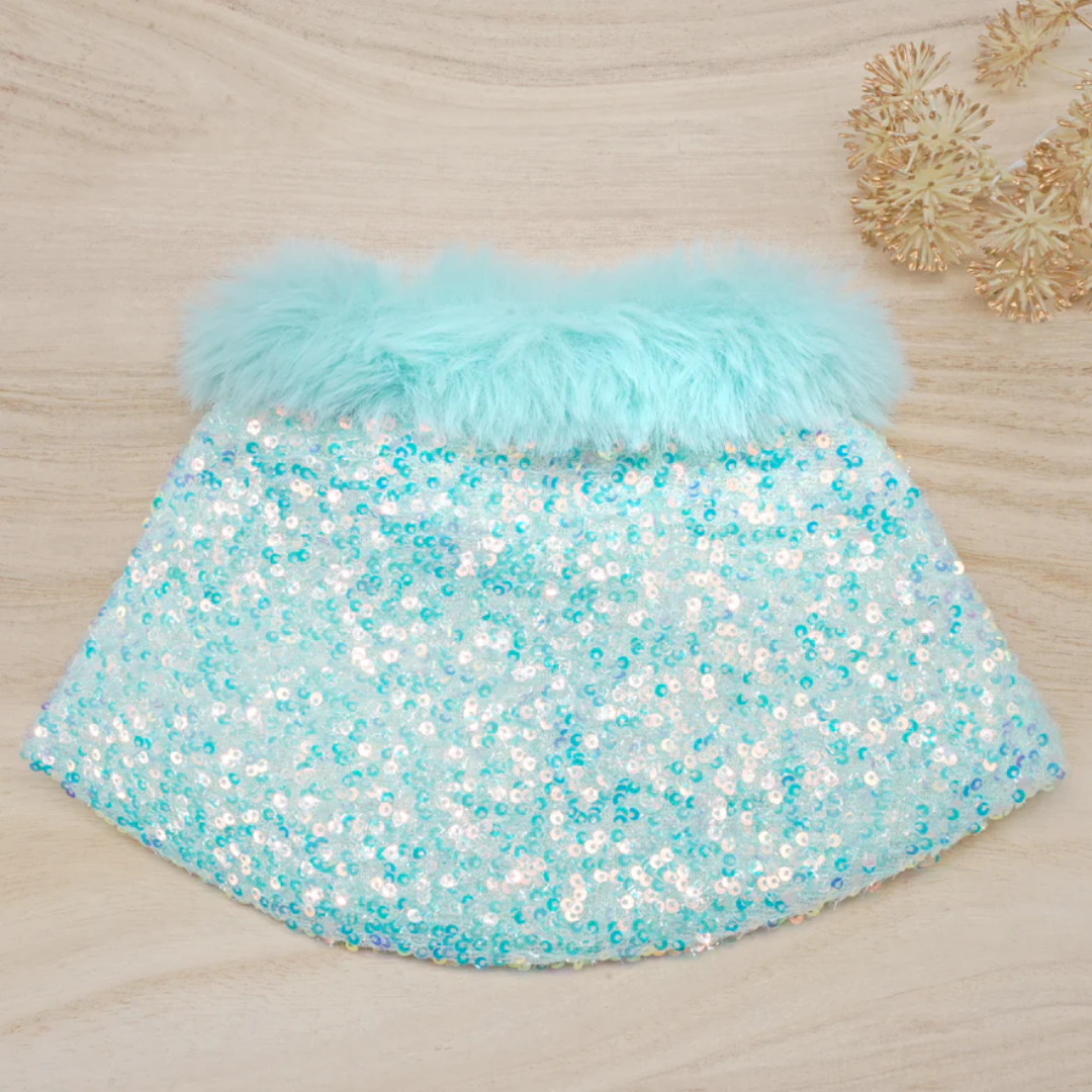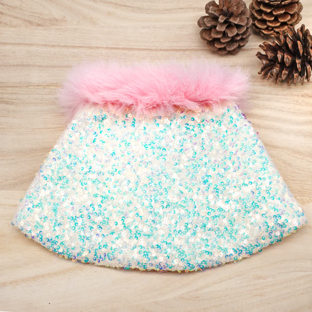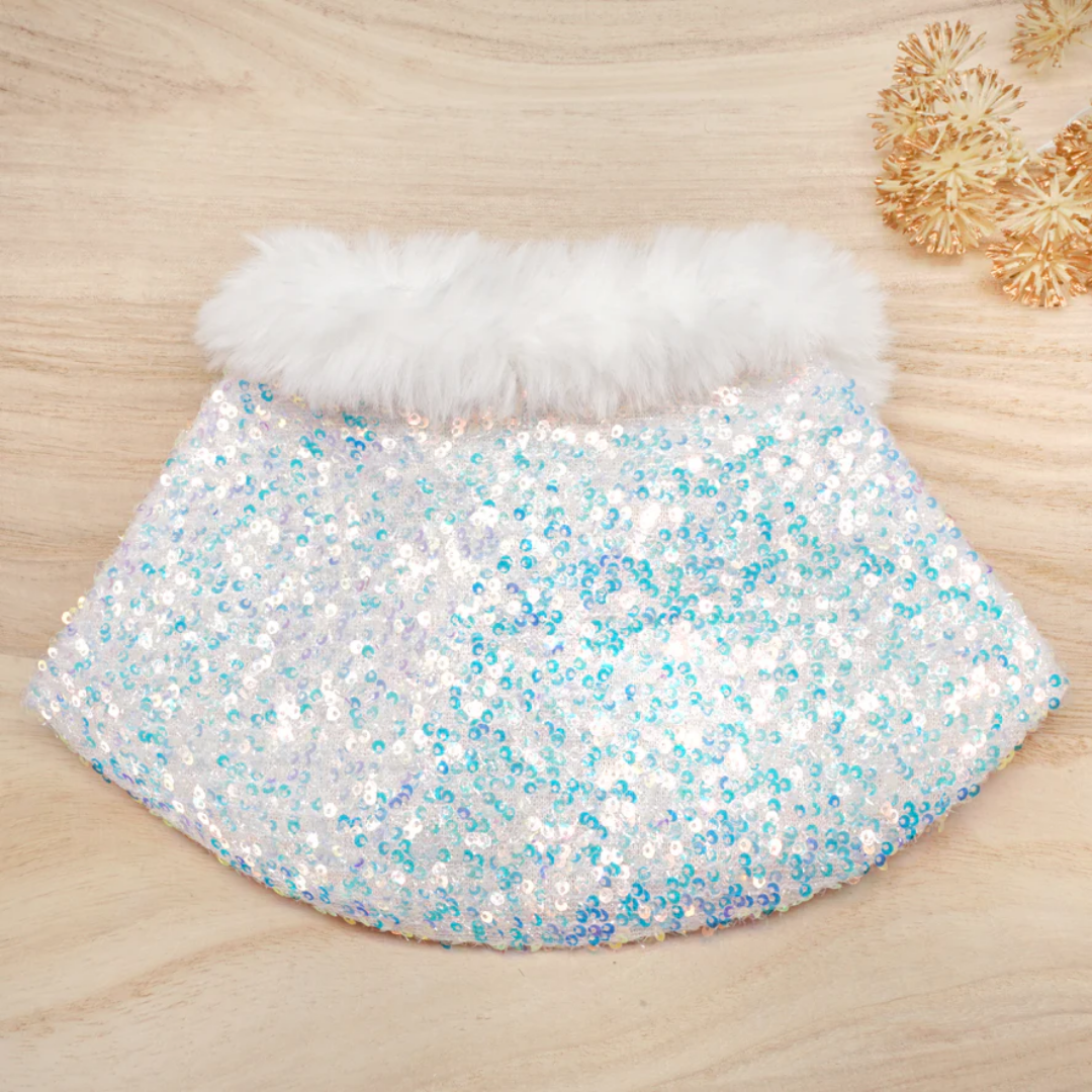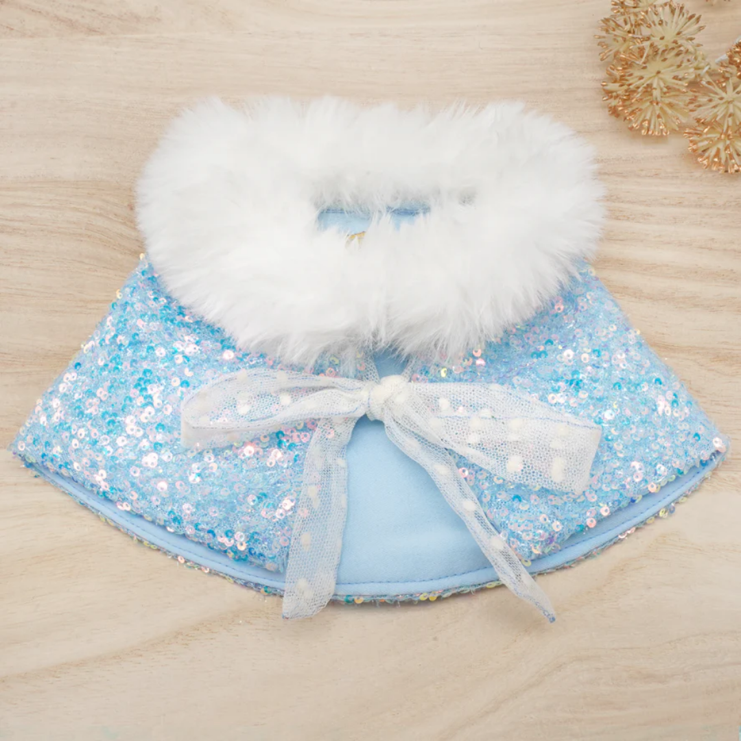 This beautifully sequin-embellished glitter cape is accented with faux fur panels and co-ordinating sequin details. Design and handmade by our dedicated TPC production team of artisans, only quality imported fabrics is screened and selected with our highest standard of workmanship just for you. Style and comfort made in mind for your pet. Perfect for a fashionable night out on the town or it can be worn just about anywhere!