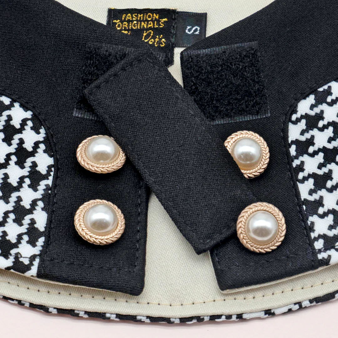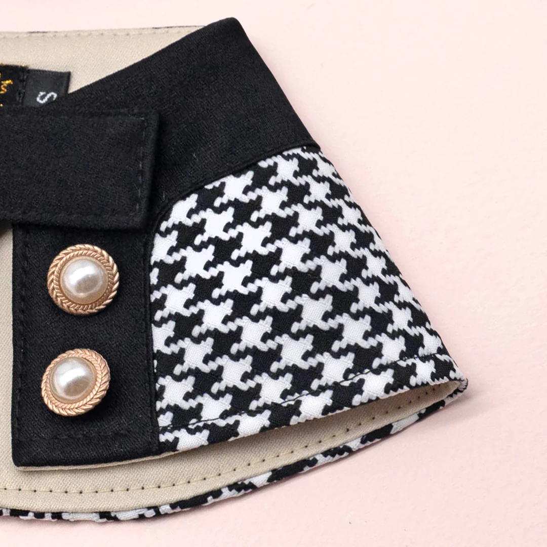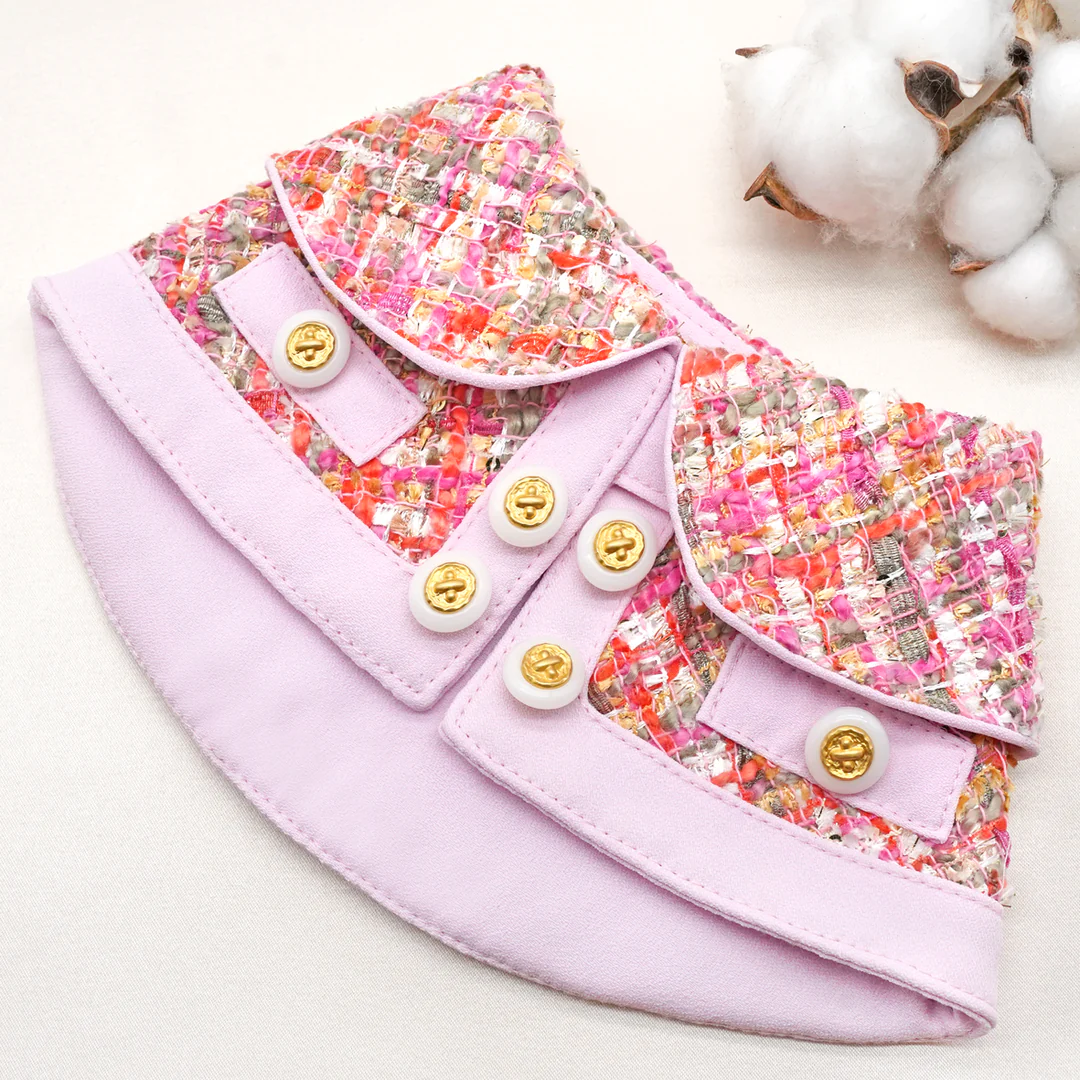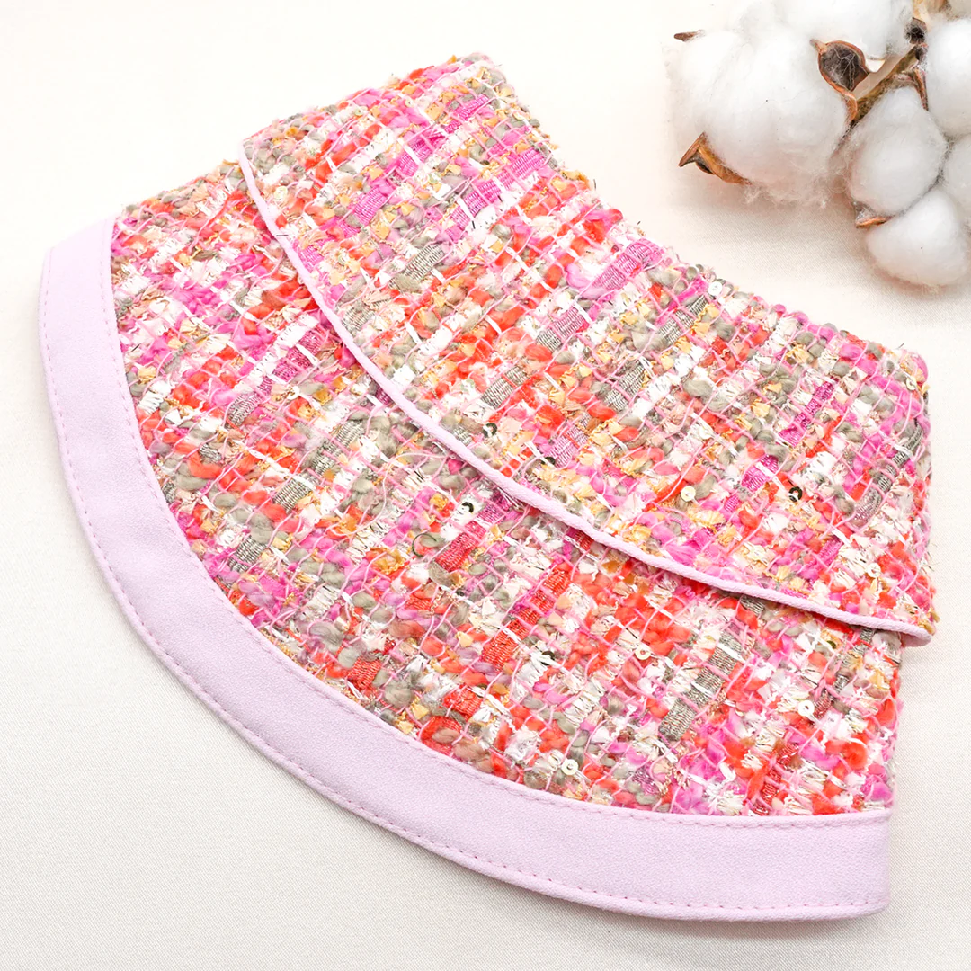 The Pet’s Couture ROSETTE ~ Baby Pink Checkered Tweed with Lace Pearls Trim Collar