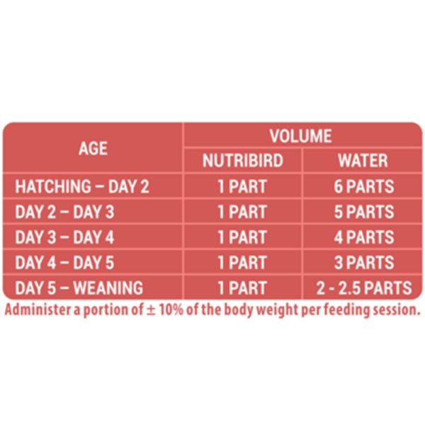 Scientifically approved composition with all the nutrients your baby-bird needs. Ensures an optimal growth to completely healthy young birds. Can be used from hatching until weaning.