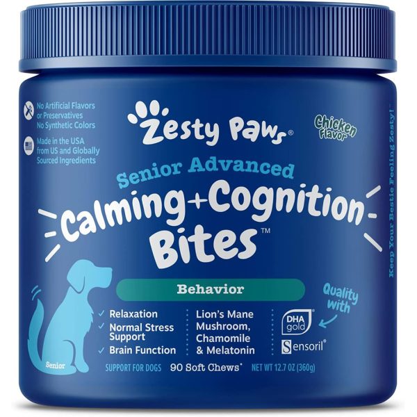 - Stay Sharp, Fido! – Zesty Paws Advanced Cognition Bites are chewable supplements with premium ingredients that help with cognitive function, stress, clarity, and focus for your canine companion