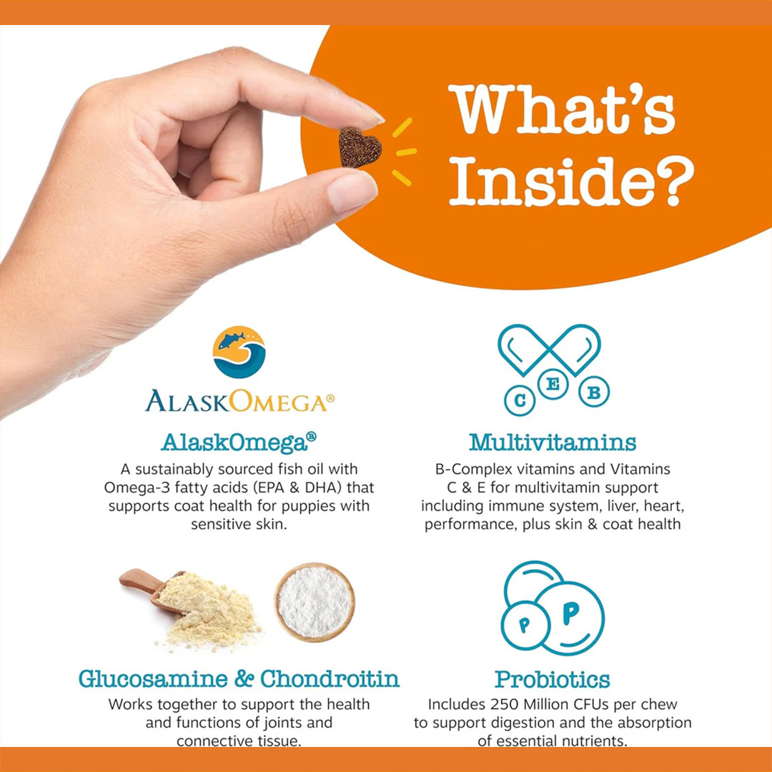Multivitamin Support for Your Puppy – This multivitamin soft chew supports 8 areas of well-being for puppies from 8 weeks old to 1 year old.