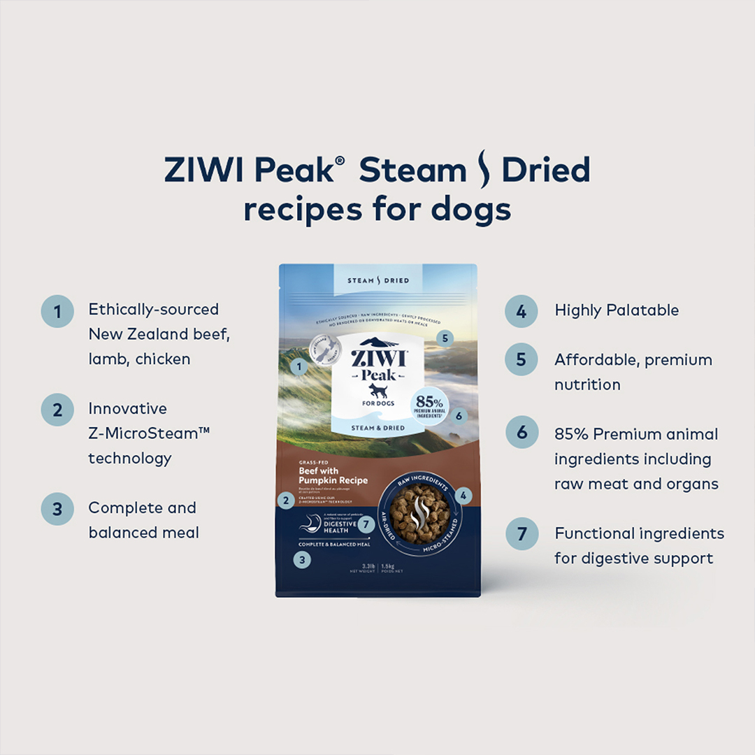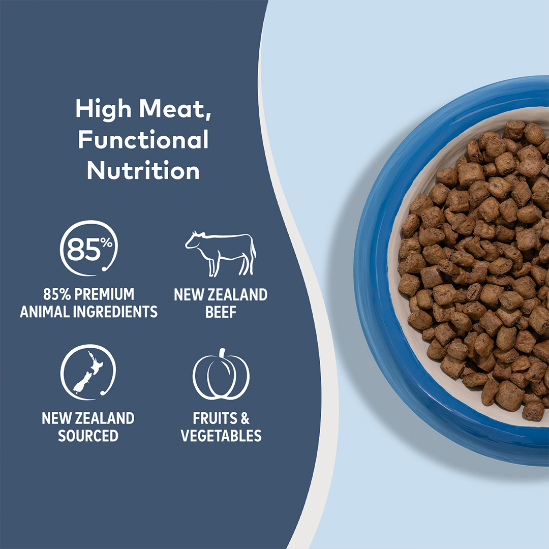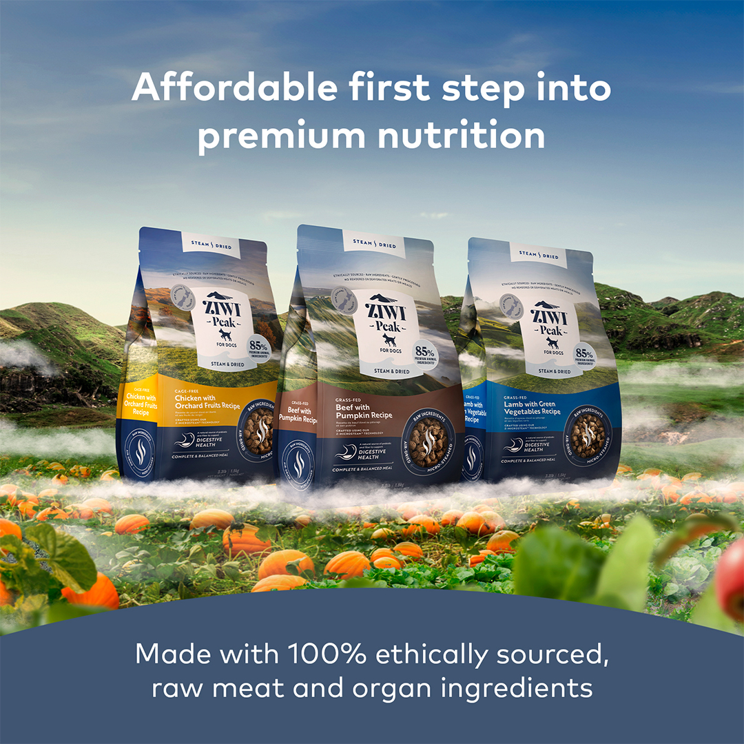 Crafted from ethically sourced raw lamb from New Zealand’s green pastures with a blend of spinach, kale, green beans, and chicory root to support digestive health. Delicately micro-steamed then gently air-dried via our innovative two-step Z-MicroSteam™ technology to ensure optimum nourishment and palatability.